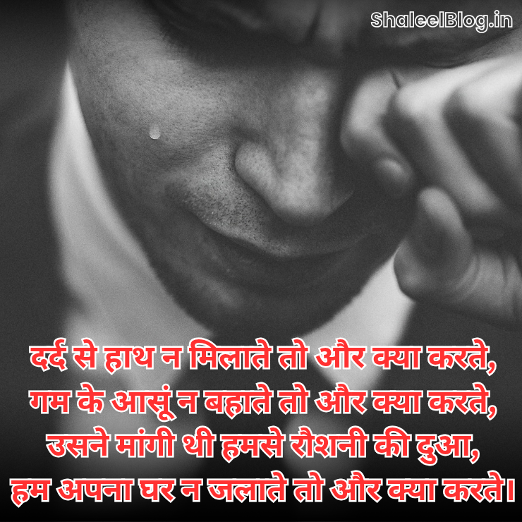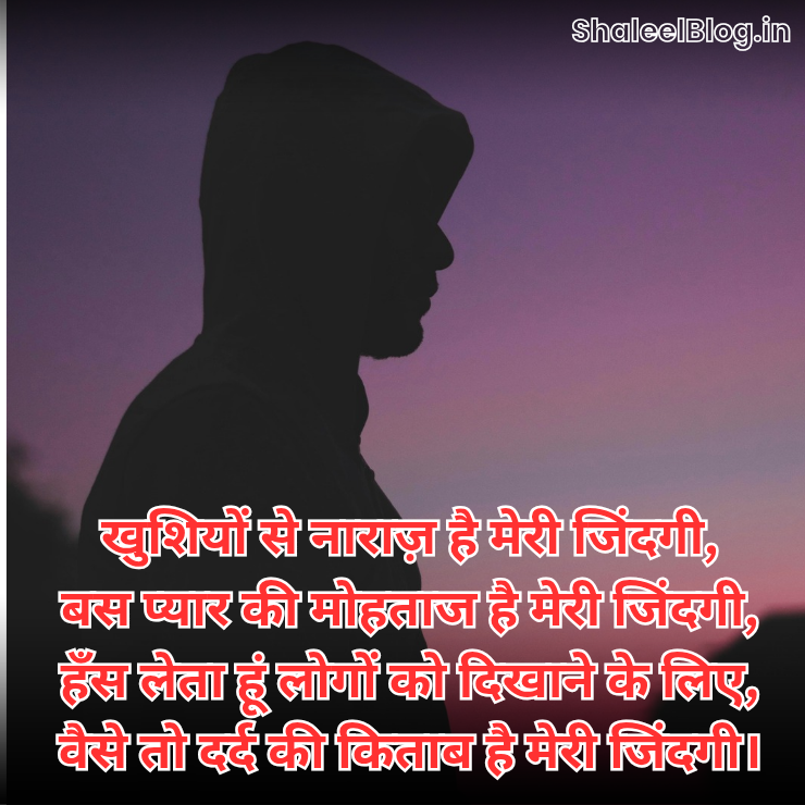 लड़कों के लिए दुखद शायरी ( Sad shayari for Boys in Hindi ) उन लड़कों के लिए होती है जो अपने दर्द और उदासी को शायरी के लिए एक्सप्रेस करते हैं। ये शायरी उनकी तन्हाई, प्यार में मिलती है नफ़रत या जिंदगी की मुस्कुराहट को दर्शाती है। अक्सर, ये जज़्बात दिल की गहराइयों से निकलते हैं और अपने गम को लफ्जों के ज़रिये बयान करते हैं। ये शायरी ना सिर्फ दर्द को समझने में मदद देती है, बल्कि अपने जज़्बात को सामने रख कर जिंदगी को समझने की कोशिश भी होती है।(Sad shayari for Boys in Hindi)
